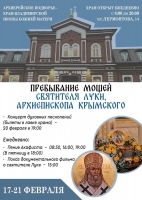На время пребывания мощей храм открыт с 8.00 до 20.00; ковчег будет находиться там до 21 февраля.