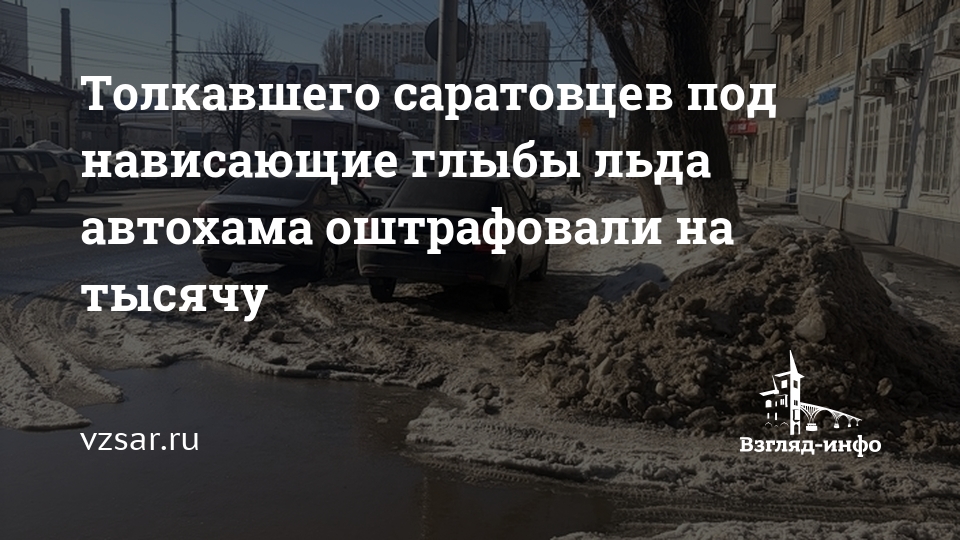 Толкавшего саратовцев под нависающие глыбы льда автохама оштрафовали на тысячу