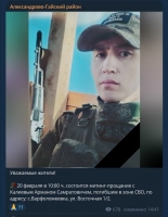 Глава Духовницкого района Иван Лялин рассказал, что завтра в селе Софьинка пройдет прощание с Дмитрием Ивановым, а администрация Александрово-Гайского района сообщает, что завтра в селе Варфоломеевка пройдет прощание с погибшим Арманом Калиевым.