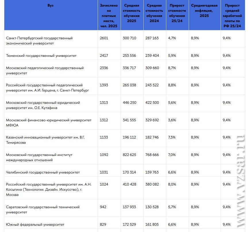 Таким образом, средний размер платы за обучение в Политехе за год вырос всего на 5,7% (при этом инфляция составила в 2025 году +8,9%, а рост средней зарплаты +9,4%).
