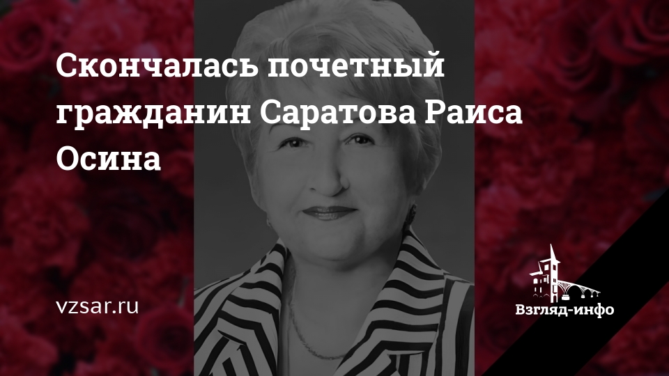 В Саратове на 85-м году жизни скончалась почетный гражданин города Раиса Осина, сообщает мэрия.