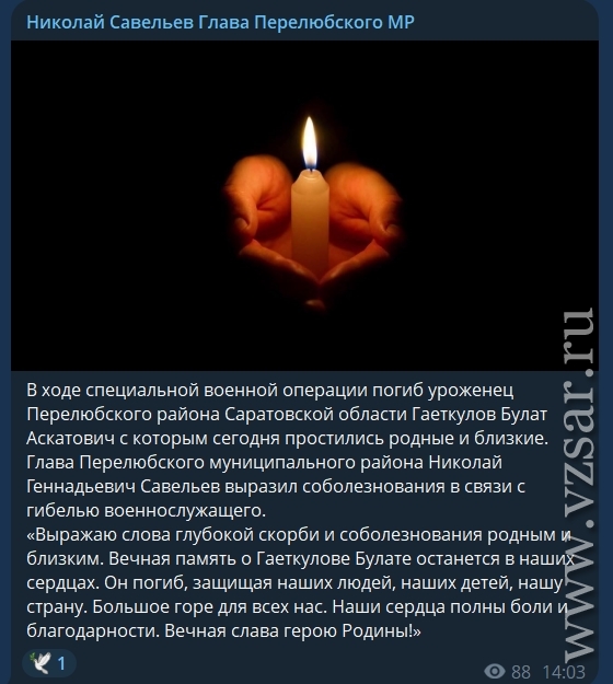 Глава Перелюбского района Николай Савельев рассказал о прошедшем прощании с Булатом Гаеткуловым.