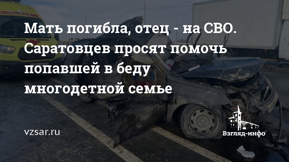 Мать погибла, отец - на СВО. Саратовцев просят помочь попавшей в беду многодетной семье