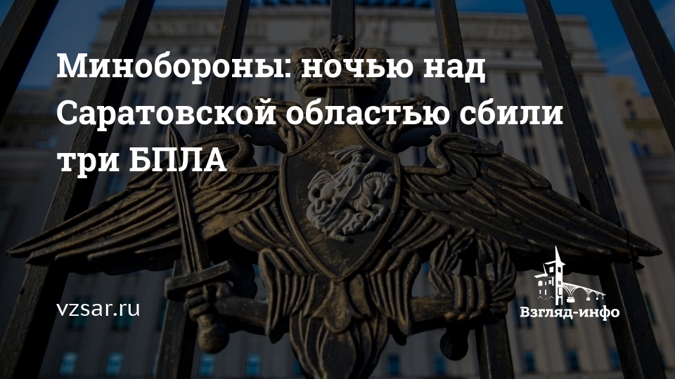 Сегодня ночью над территорией Саратовской области сбили три БПЛА, сообщает Минобороны РФ.