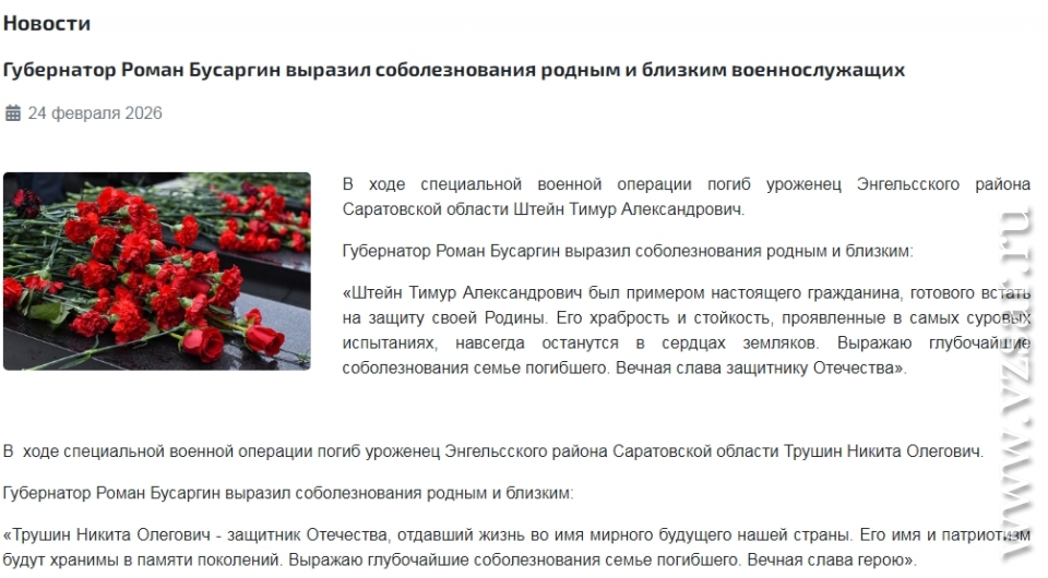 Администрация Саратова сообщает о смерти Дмитрия Икима, Александра Лунченкова и Артема Горохова, а администрация Энгельсского района - Тимура Штейна и Никиты Трушина.