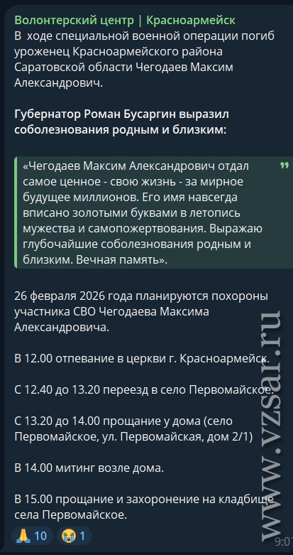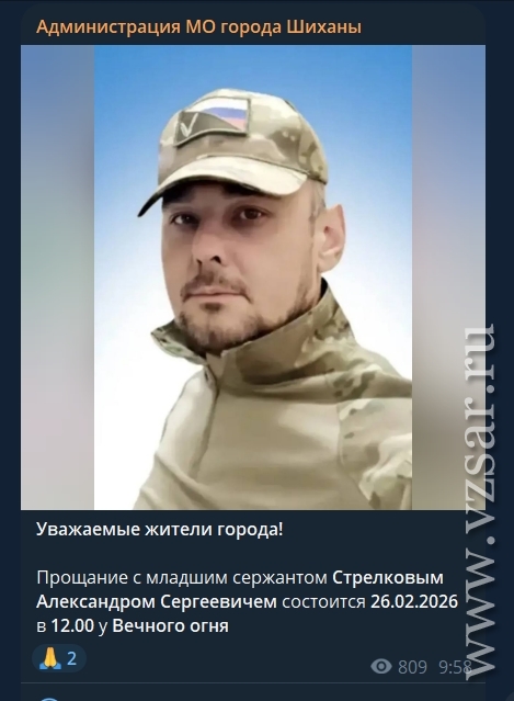 Муниципальный волонтерский центр Красноармейского района сообщает о гибели Максима Чегодаева, а администрация города Шиханы – о погибшем младшем сержанте Александре Стрелкове.