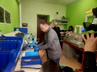 Директор предприятия Анатолий Рябов провел экскурсию по цехам, продемонстрировав полный цикл производства – от монтажа компонентов на автоматизированных линиях до тестирования готовых изделий.