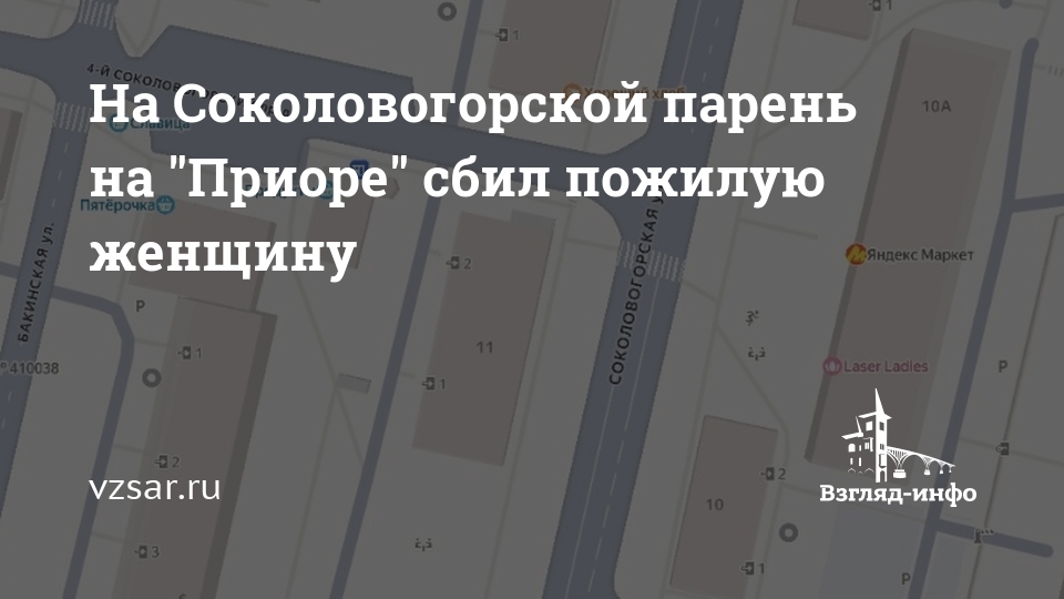 В 11.50 напротив дома №11 по улице Соколовогорская 19-летний парень на "Приоре" наехал на 65-летнюю женщину.