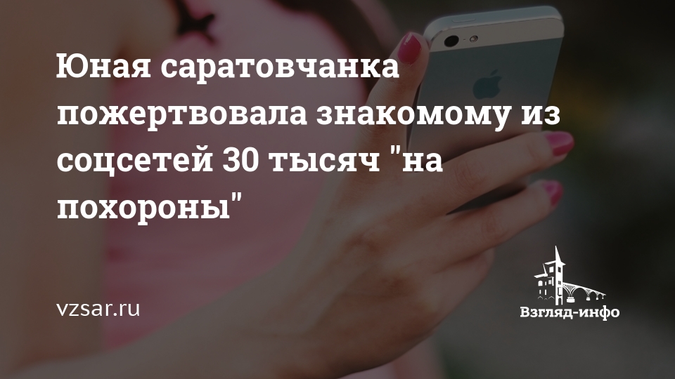 Юная саратовчанка пожертвовала знакомому из соцсетей 30 тысяч "на похороны"