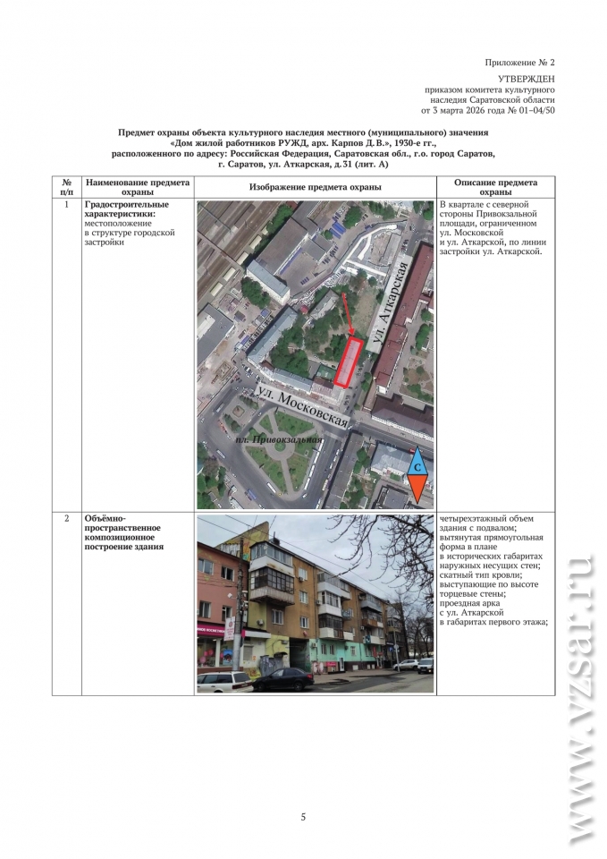 Статус объекта культурного наследия муниципального значения получил "Дом жилой работников РУЖД" на улице Аткарская, 31.