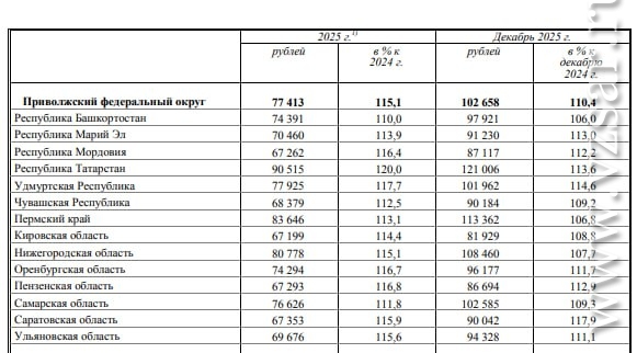 По итогам всего 2025 года Саратовская область заняла 11 место в ПФО по среднемесячной номинальной начисленной заработной плате работников организаций.