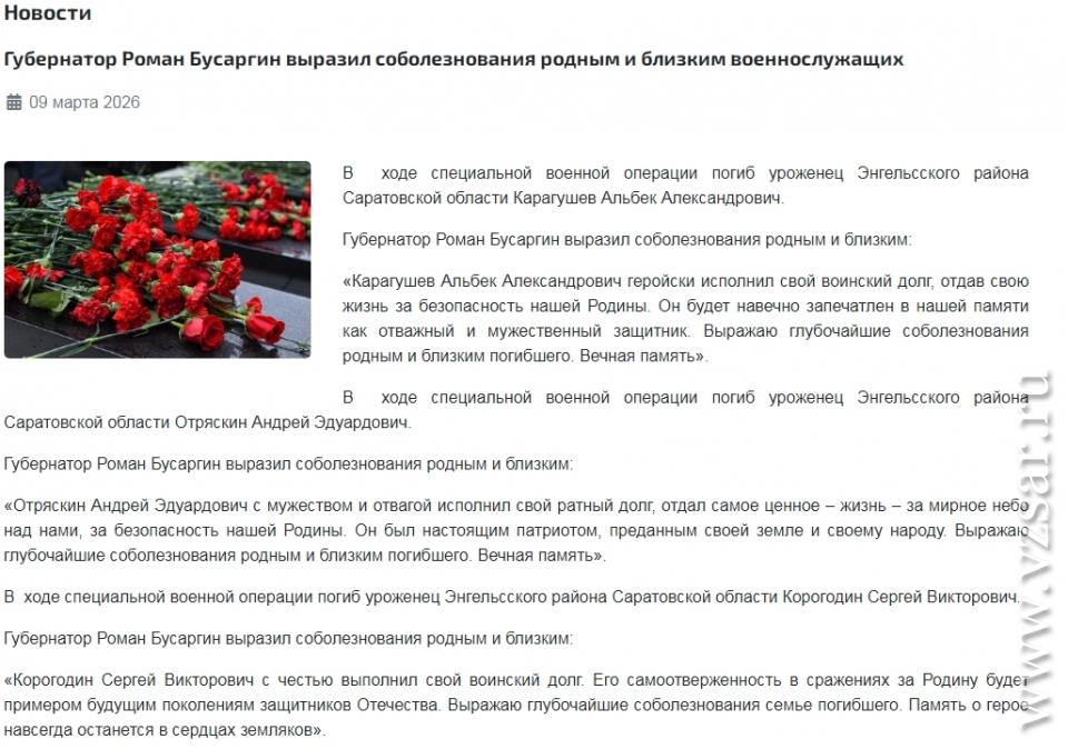 В ходе специальной военной операции погибли еще семь жителей Саратовской области.