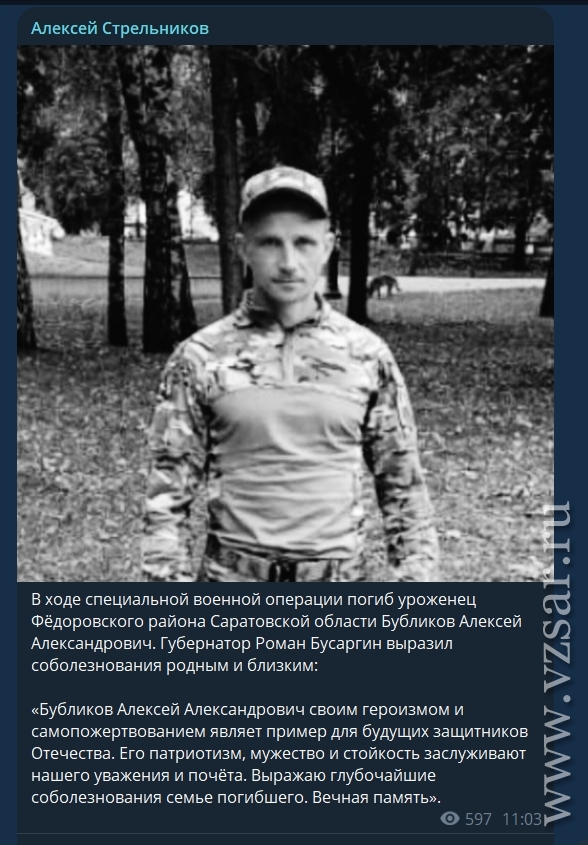 Глава Федоровского района Алексей Стрельников рассказал о том, что с фронта не вернулся живым Алексей Бубликов.