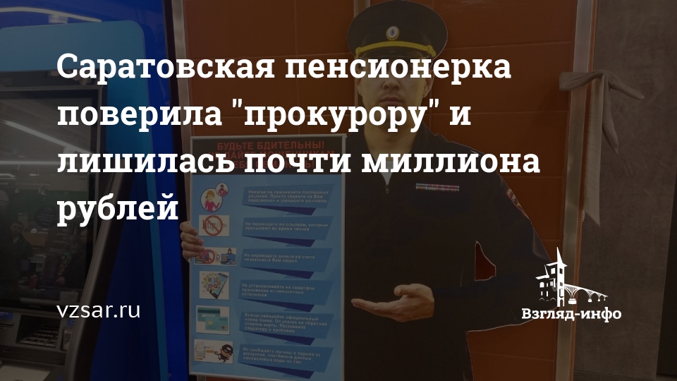 Саратовская пенсионерка поверила "прокурору" и лишилась почти миллиона рублей