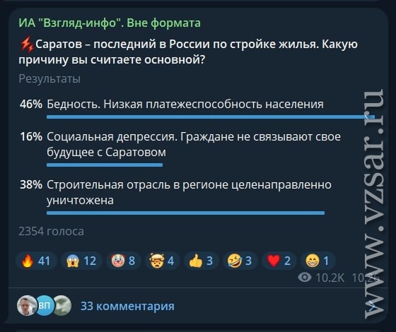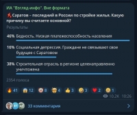 Об этом свидетельствуют итоги голосования и комментарии к нему в тг-канале ИА "Взгляд-инфо". Вне формата".