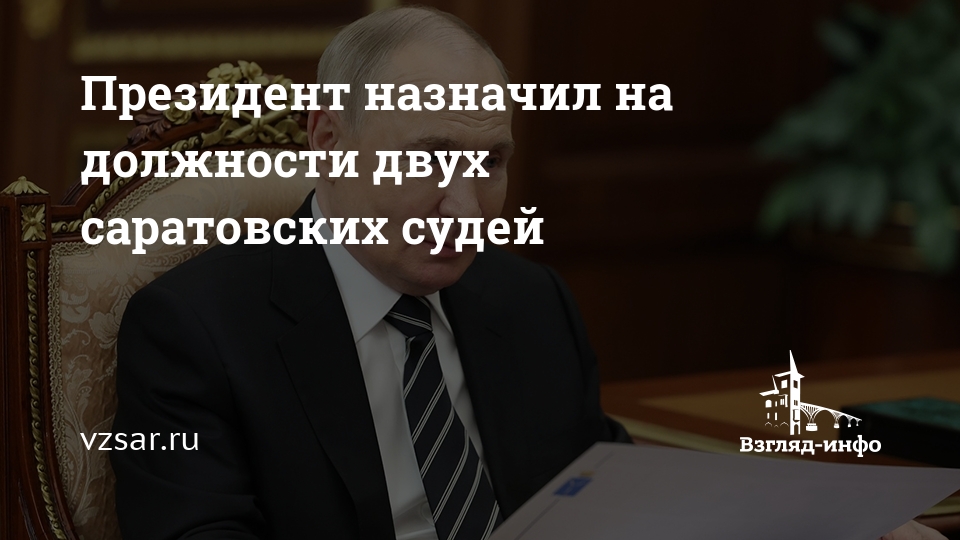 Сегодня Президент РФ Владимир Путин назначил на должности двух судей в судах Саратовской области. Опубликован указ главы государства.