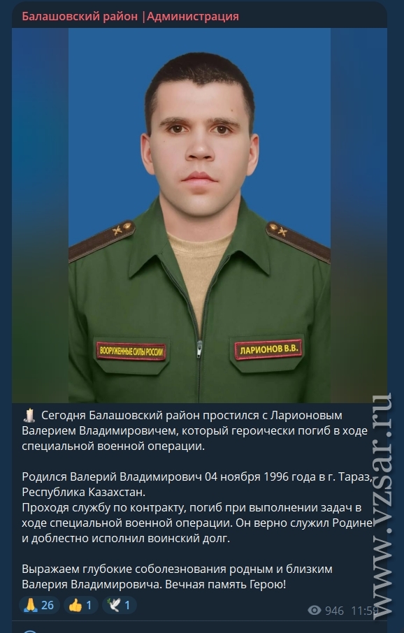Администрация Балашовского района рассказала о прошедшем сегодня прощании с Валерием Ларионовым.