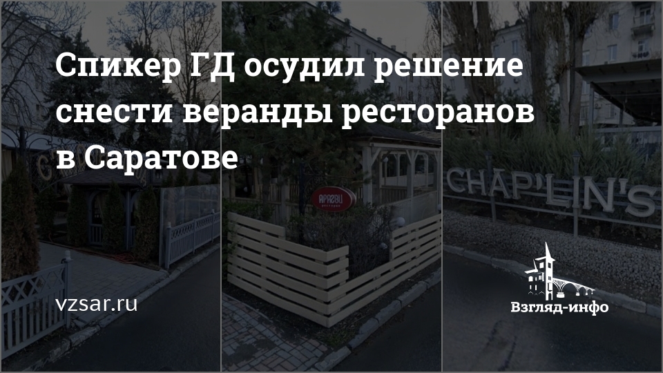 Спикер Госдумы Вячеслав Володин высказался против сноса летних веранд ресторанов на Набережной Космонавтов в Саратове.