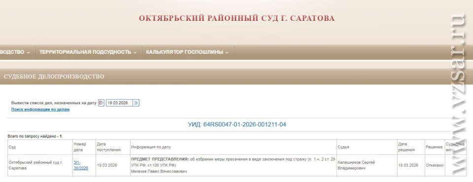 Его рассматривал судья Сергей Калашников (ранее работал руководителем Волжского СО регионального СУ СКР; службу оставил три года назад; его супруга работает в областной прокуратуре).