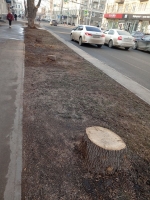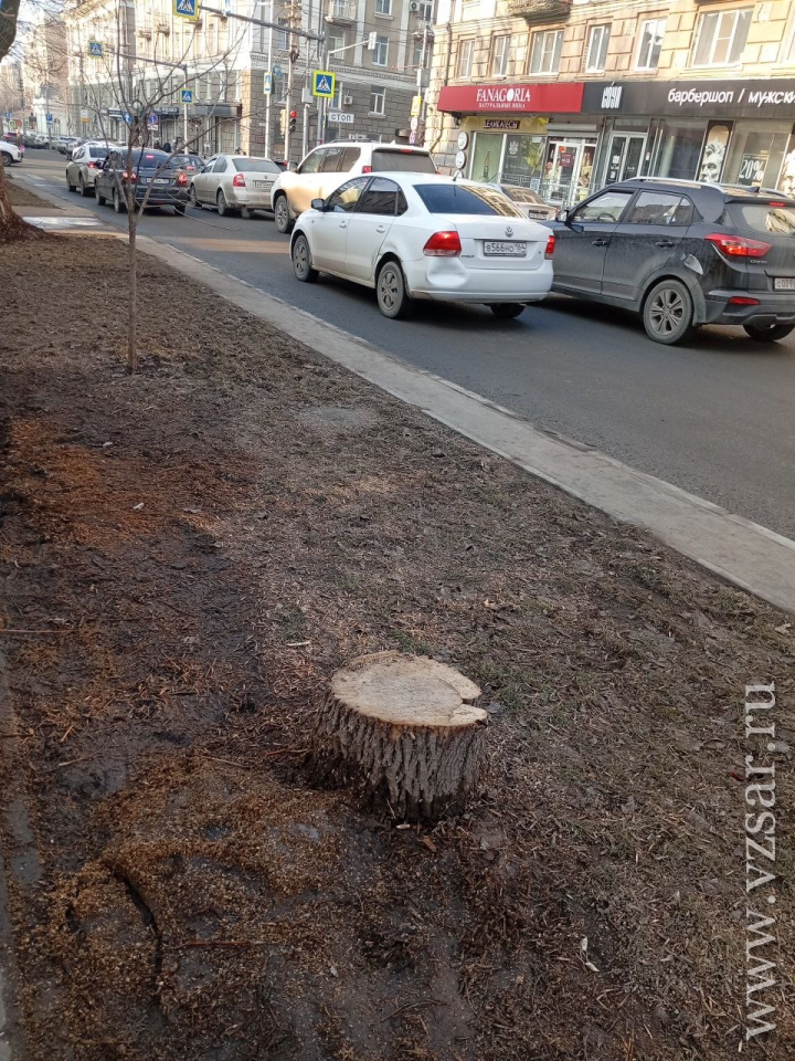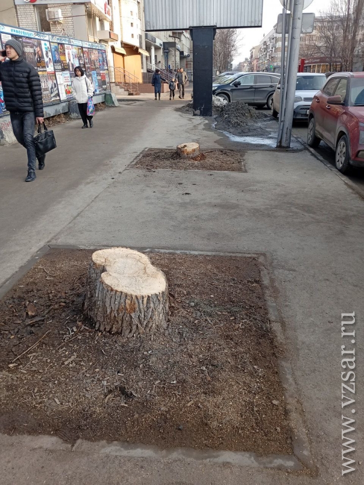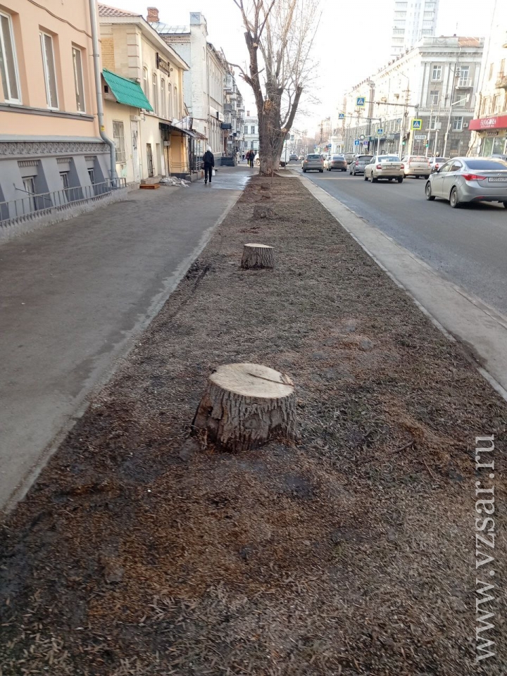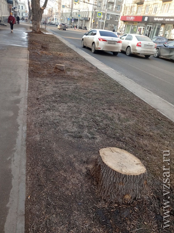 В Саратове на улице Вольской, на отрезке между улицами Пушкина и Советской, спилили еще семь крупных деревьев, которые не были засохшими.