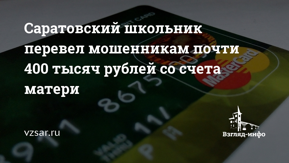 Саратовский школьник перевел мошенникам почти 400 тысяч рублей со счета матери