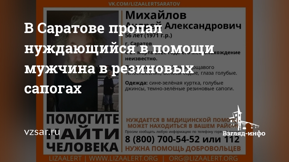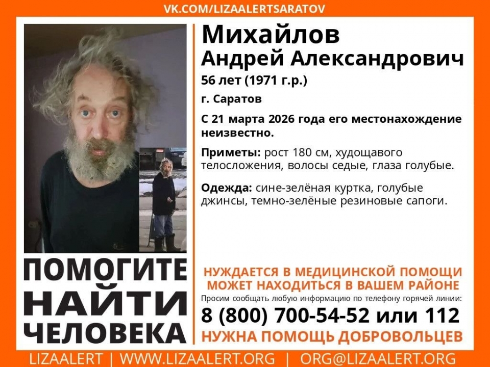 В Саратове пропал 56-летний Андрей Михайлов, сообщает поисковый отряд "Лиза Алерт Саратов".
