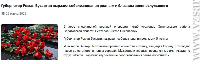 Администрация Энгельсского района без подробностей сообщила о гибели Виктора Нестерова.