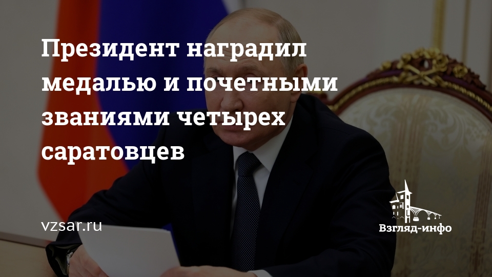 Сегодня президент России Владимир Путин подписал указ "О награждении государственными наградами РФ". В нем среди отмеченных главой государства оказались и четыре представителя Саратовской области.