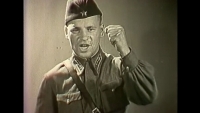 "Один из самолетов мне удалось сбить огнем своих пулеметов. Два других продолжали идти на город. Я принял решение таранить после того, как мои патроны кончились. В результате удачных атак один самолет был таранен плоскостью, другой самолет таранен мотором. Мой самолет разрушился, и я получил легкие ранения. Принял решение прыгать на парашюте. Правительство за этот воздушный бой удостоило меня высокой награды – ордена Ленина. В ответ на эту награду я сбил еще три фашистских самолета, и еще четыре самолета мы сбили вместе с моими товарищами", - говорит в хронике Николай Терехин (ИА "Взгляд-инфо" благодарит за запись Саратовский Дом кино).