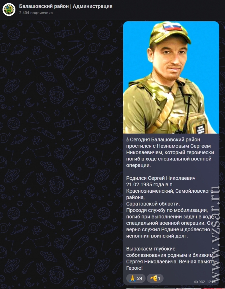 Администрация Балашовского района рассказала о прошедшем сегодня прощании с Сергеем Незнамовым.