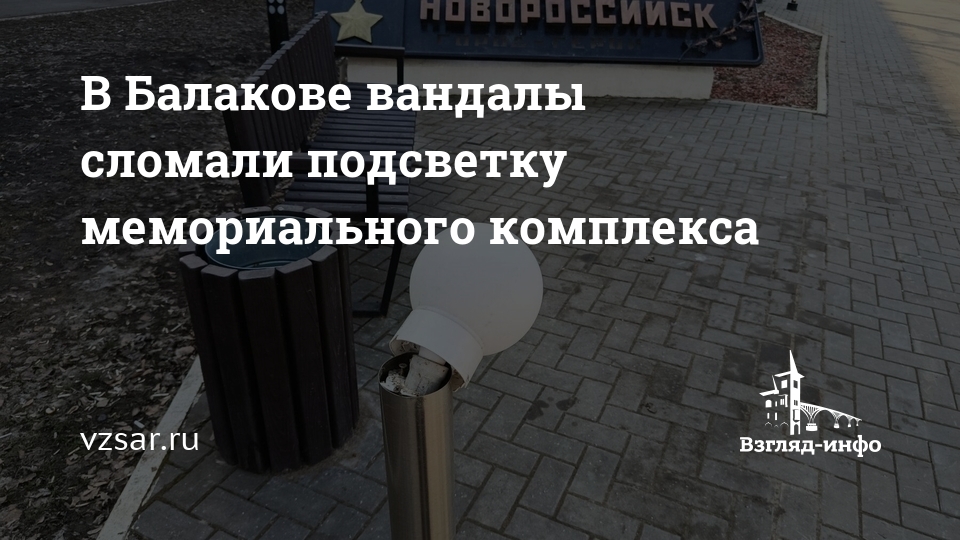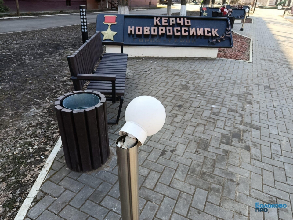 В Балакове Саратовской области неизвестные сломали подсветку возле стел с названием городов-героев. Об этом сообщает портал "ПроБалаково".