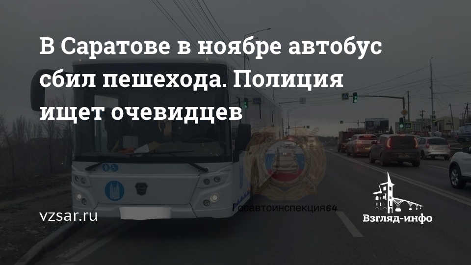 В Саратове ищут свидетелей ДТП с участием автобуса и пешехода, произошедшего в ноябре прошлого года, сообщает пресс-служба регионального ГУ МВД.