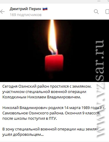 Вчера в Озинском районе простились с Николаем Колодкиным, сообщил глава муниципалитета Дмитрий Перин.