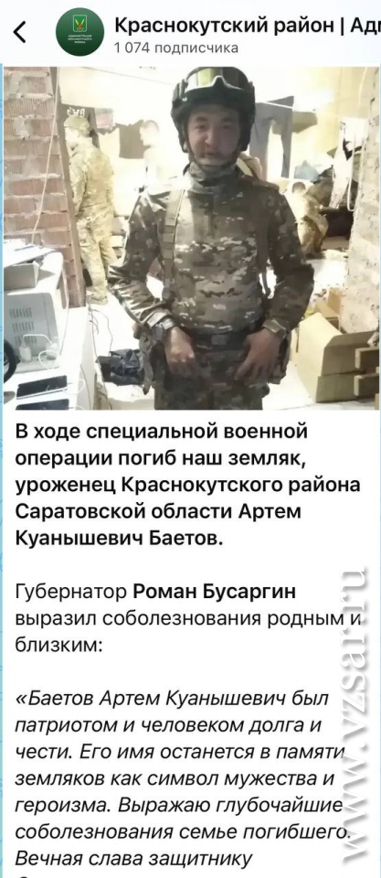 Администрация Краснокутского района сообщила о гибели Артема Баетова. Церемония прощания с павшим воином пройдет завтра в 10.30 в селе Карпенка.