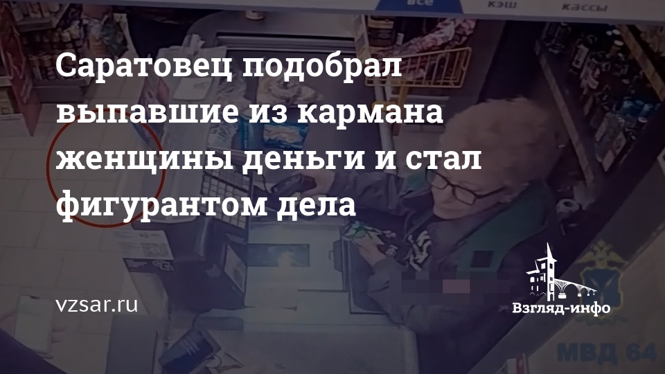 Саратовец подобрал выпавшие из кармана женщины деньги и стал фигурантом дела