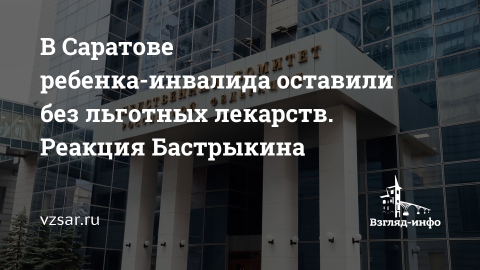 В Саратове ребенка-инвалида оставили без льготных лекарств. Реакция Бастрыкина