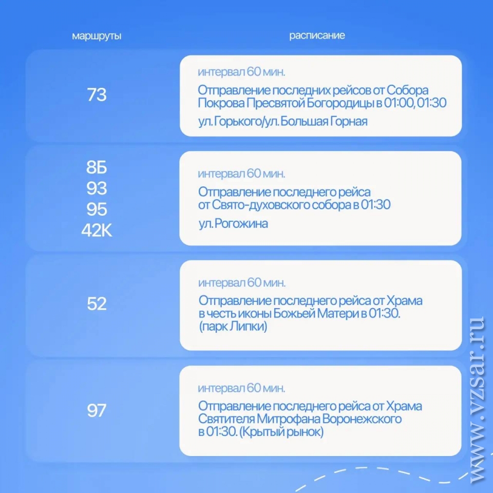 На линиях будет предусмотрена работа 19 единиц подвижного состава. С расписанием можно ознакомиться в прилагаемых карточках.