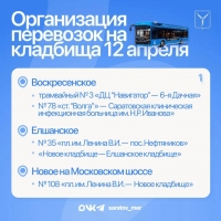 Кроме того, для перевозки жителей к городским кладбищам 12 апреля будет организована работа 52 единиц транспорта.
