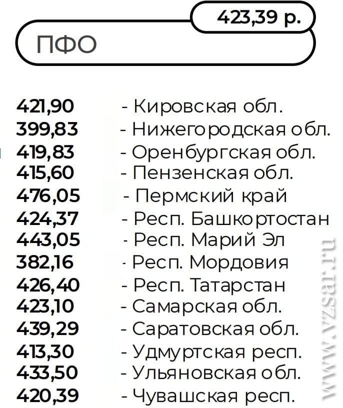 Для регионов Приволжья этот показатель оказался на уровне 423,39 рубля.