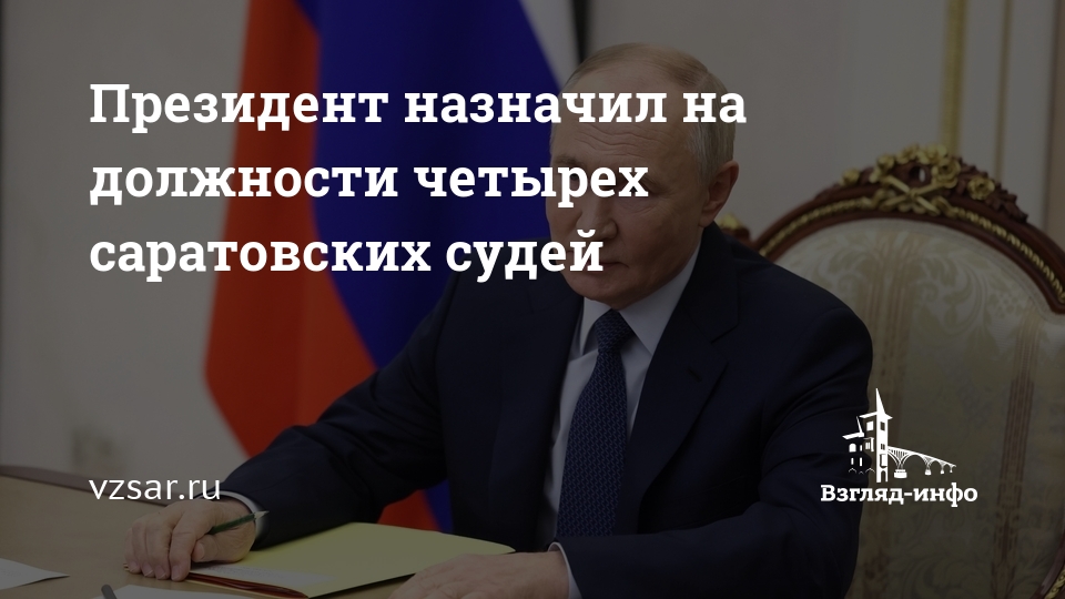 Сегодня президент РФ Владимир Путин назначил на должности четырех судей в судах Саратовской области. Соответствующий указ главы государства размещен на официальном публикаторе.