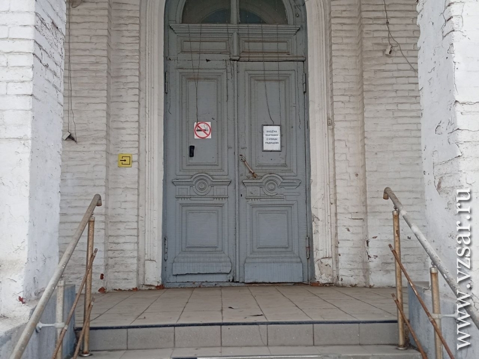 Отметим, что два года назад наши коллеги из TVSAR (видеопроект ИА "Взгляд-инфо") также указывали на заброшенный вид здания: "Облупившаяся краска и трещины по всему фасаду, отлетевшая плитка на ступенях".