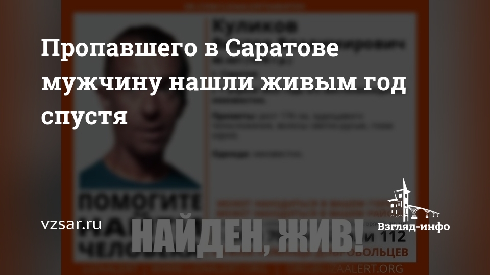 Саратовские волонтеры объявили о прекращении поисков пропавшего в прошлом году Виктора Куликова.
