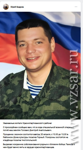 В Краснопартизанском районе завтра состоится прощание с Дмитрием Головко, об этом сообщил глава муниципалитета Юрий Бодров. Церемония пройдет с 10.00 до 12.00 в районном доме культуры поселка Горный. Похороны состоятся на кладбище поселка Чистопольский.