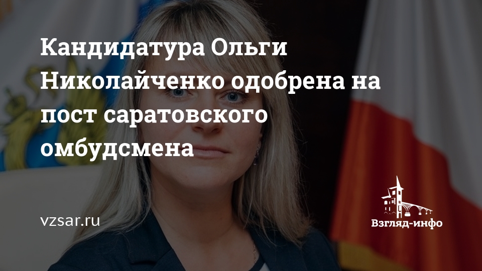 23 марта стало известно, что новым уполномоченным по правам человека в Саратовской области станет Ольга Николайченко. Ее кандидатура была выдвинута на данную должность региональными депутатами-единороссами.