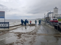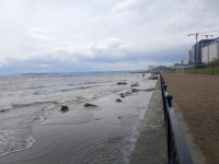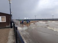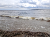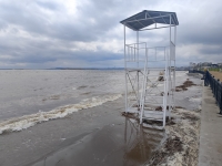 В результате сделанных наблюдений журналисты пришли к выводу, что песок на рекреационной зоне придется намывать заново: "большая вода" обнажила ранее скрытые песком шпунты, выполняющие функцию берегоукрепления.