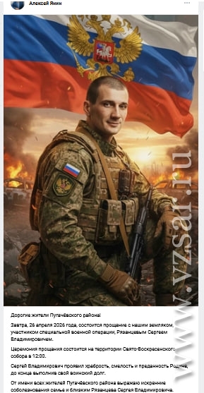Глава Пугачевского района Алексей Янин рассказал, что сегодня состоялось прощание с Сергеем Рязанцевым.