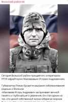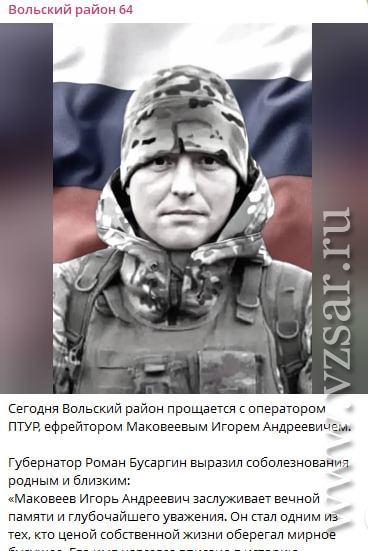 В Вольском районе вчера состоялось прощание с оператором ПТУР, ефрейтором Игорем Маковеевым, об этом рассказали в райадминистрации.