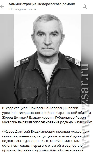 Администрация Федоровского района сообщила о гибели Дмитрия Журова, с которым простились вчера.