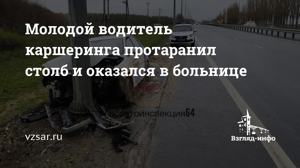 По предварительным данным, в 5.30 на выезде из Саратова по Ново-Астраханскому шоссе 21-летний водитель, управляя автомобилем Volkswagen Polo (с эмблемой каршеринга), врезался в световую опору.