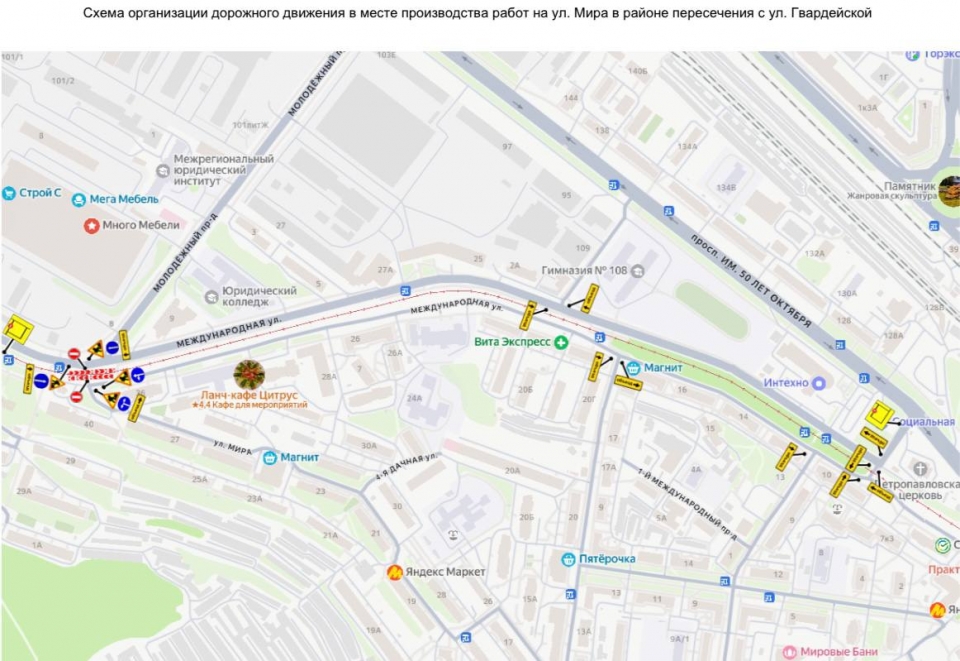 - улица Мира в районе пересечения с Международной (с 20.00 1 мая до 08.00 2 мая и с 08.00 2 мая до 08.00 3 мая).